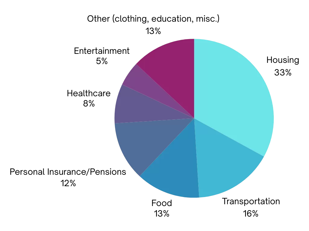 According to the U.S. Bureau of Labor Statistics (BLS), here’s how the average household spent its income in a recent year (rounded for simplicity):