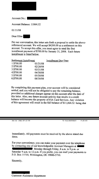 A continuación se muestra una carta de liquidación de deuda de Central Credit Services Inc. Central Credit Services, Inc. se especializa en la cobranza de deudas de autos, hipotecas, préstamos primarios, de tarjetas de crédito, préstamos a plazos y cuentas a cobrar de minoristas y otros tipos. Con sede en Jacksonville, Florida, la empresa comenzó en 1987.