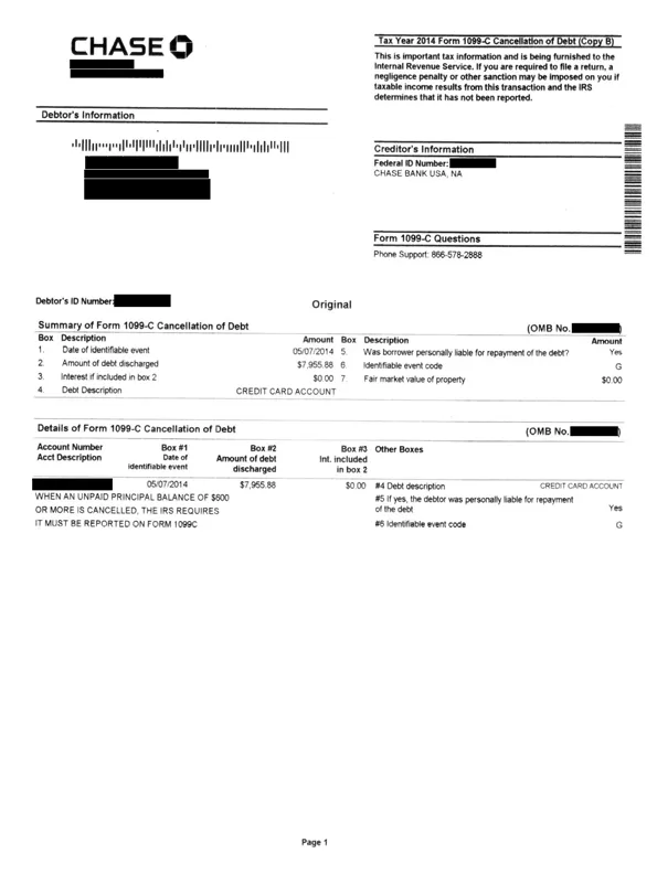 Carta de Liquidación de Deuda de Chase Bank USA America de mayo de 2014