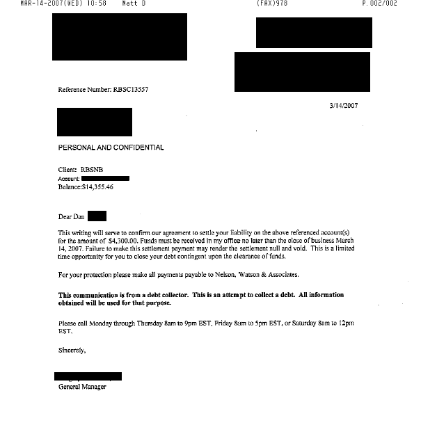 Lo siguiente es una carta de liquidación de deuda para FMA Alliance Ltd. En la carta, puedes ver la resolución final negociada donde el cliente ahorró 70%. Solo pagaron $4.300,00 del saldo adeudado de $14.355,46.