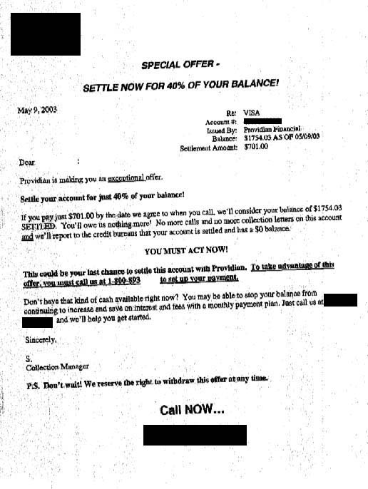 Carta de Liquidación de Deuda Providian Mayo 2003