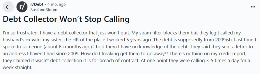 A veces, la mejor manera de entender cómo manejar las llamadas de cobranza es escuchando a otros que han pasado por ello. Toma este ejemplo de una conversación en Reddit, donde alguien compartió su experiencia con llamadas persistentes por una deuda que ni siquiera era suya.