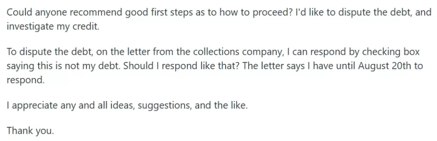 Los comentaristas instaron al usuario a verificar la deuda solicitando una carta de validación.