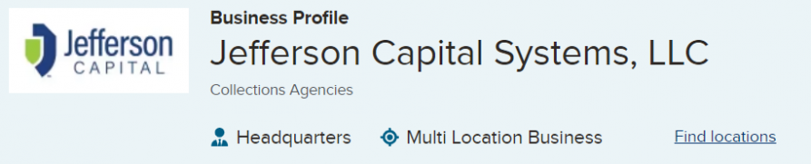 Jefferson Capital Systems, LLC es una agencia de cobro de deudas con sede en St. Cloud, Minnesota. Compran deudas vencidas de compañías de tarjetas de crédito, prestamistas e incluso proveedores de servicios públicos. Cuando un acreedor decide que no va a cobrar una deuda, la vende a compañías como Jefferson Capital, a menudo por una fracción del monto original. Jefferson Capital luego intenta cobrar el saldo completo o negociar un acuerdo.