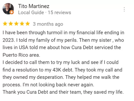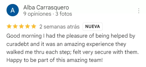 Aquí hay algunas historias de éxito de clientes reales, mostrando cómo CuraDebt ha ayudado a personas como tú a encontrar alivio. ¡Tú podrías ser el próximo! Contáctanos hoy y da el primer paso hacia la libertad financiera.