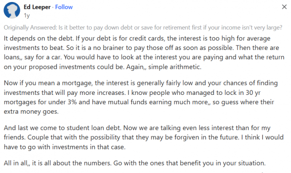 Comunidades en línea como Reddit o Quora son excelentes lugares para buscar consejos financieros de personas reales. Esto es lo que dicen algunos usuarios: