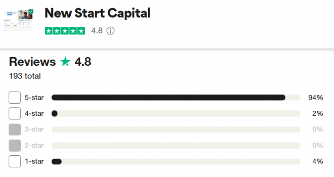 Con una calificación de 4.8/5 basada en 193 reseñas, los usuarios de Trustpilot frecuentemente elogian la amabilidad y el profesionalismo del personal de New Start Capital.