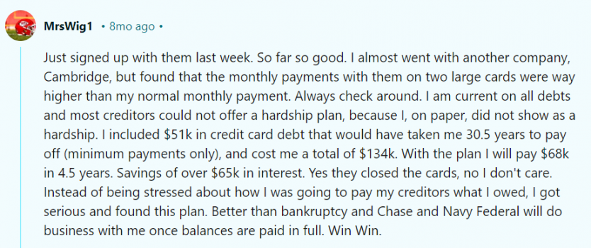 - Reseña Positiva: “Están dispuestos a ayudarte a consolidar tu deuda a un precio asequible.”