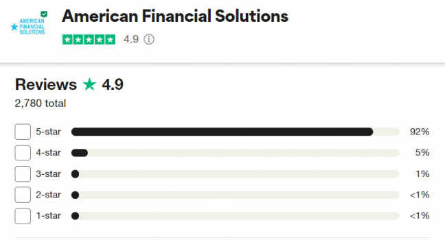 American Financial Solutions presume de una impresionante calificación de 4.9/5 en Trustpilot, reflejando una fuerte satisfacción del cliente.
