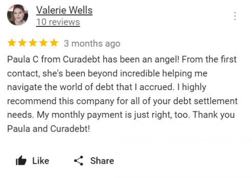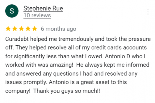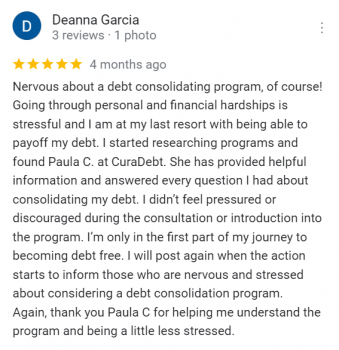 Reseña positiva: “Esta empresa fue muy útil para establecer un plan de pago para ayudar a resolver mi deuda.”