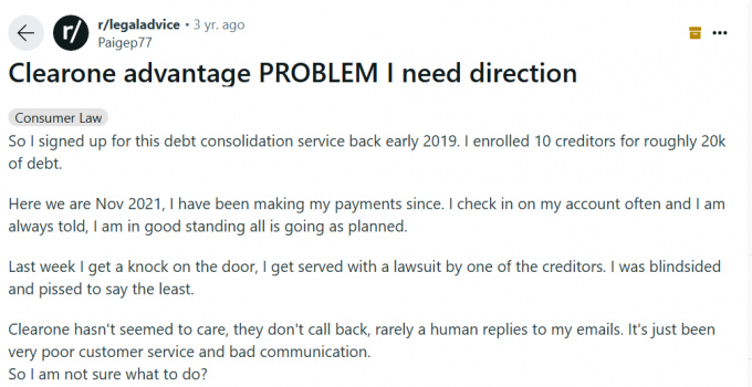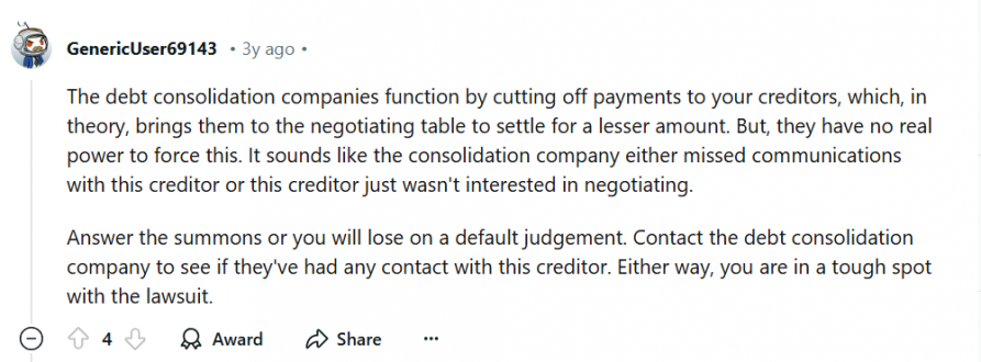 En Reddit puedes encontrar todo tipo de conversaciones y experiencias, incluyendo el alivio de deudas. Veamos qué tienen que decir algunas personas sobre esta empresa.
