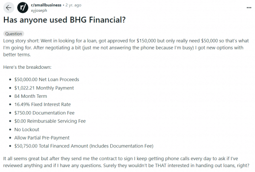 - Reseña Positiva: “Me encontré con BHG por correo. Inicialmente, pensé que era una broma, ya que no había oído de ellos. Después de unas semanas, les llamé y desde esa llamada, tomó menos de una semana obtener la aprobación para un préstamo de seis cifras.”