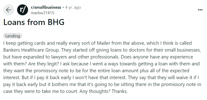 Las discusiones en Reddit sobre BHG Financial revelan una variedad de opiniones. Algunos usuarios aprecian que sus préstamos no aparezcan en los informes de crédito personales, ofreciendo un nivel de flexibilidad financiera. Sin embargo, otros expresan preocupaciones sobre las altas tasas de interés y las penalizaciones por pago anticipado, que pueden aumentar significativamente el costo del préstamo.