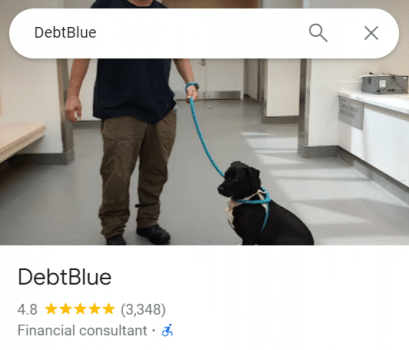 - Reseña Positiva: “Cada vez que llamo a DebtBlue para obtener ayuda, siempre tienen la razón. No tengo que esperar mucho en la línea, y son muy serviciales.”