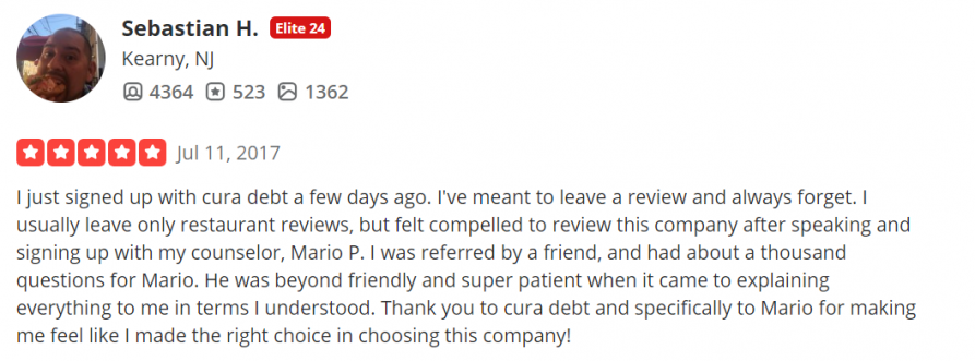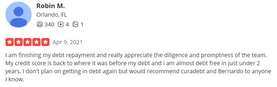 - Opinión Positiva: “Definitivamente recomiendo esta empresa. Me ayudó en mi proceso de consolidación de deudas, ¡Estoy muy satisfecho y feliz con su ayuda!”