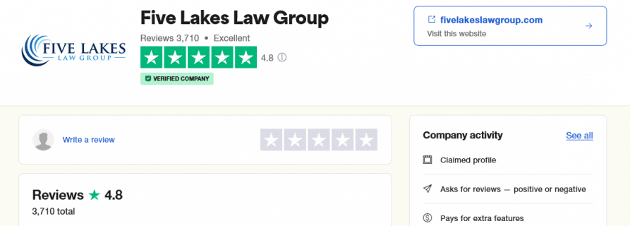 • Trustpilot: Five Lakes holds a 4.8-star rating, with some clients sharing positive outcomes. One user wrote, “They reduced my debt by 40% and were helpful throughout the process. I would recommend them if you’re struggling with high-interest debt.” However, others raised concerns about the length of time it took to see results.